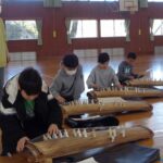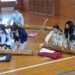 本日5時間目、音楽室にお琴の音色が響き渡りました。特別講師をお招きしての体験教室では、初めて触れる本物のお琴に、子どもたちは興味津々。一生懸命に練習し、最後には全員で「さくら」のメロディを奏でることができました。最後には、講師の先生と詩野先生による「崖の上のポニョ」の演奏に、みんな静かに聴き入っていました。