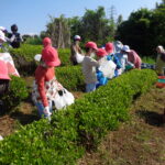 5月1日(月)に地域にお住まいの秋山さんにご協力いただき、お茶摘み体験を実施しました。よいお天気にめぐまれ、子供たちは、「ゆっくり、ていねいに」を心がけて柔らかな茶の若葉を摘み取ることができました。摘み取った茶葉は加工していただき、給食の時間に飲む予定です。