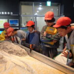 チョウザメ飼育施設では、今年生まれた20cmほどの赤ちゃんから、大きく育ったものまで見せていただきました。大きなチョウザメは2年生の身長と同じくらいの大きさで、子供たちはその大きさに驚いていました。