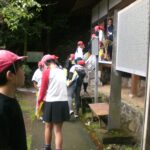 社会科「残したいもの 伝えたいもの」の学習の一環で、桑原薬師堂を見学しました。かんなみ仏の里美術館にある仏像は、以前は長源寺にある薬師堂の中に保管されていました。どのような経緯で薬師堂に保存するようになったのか、仏像がかんなみ仏の里美術館に移った経緯など話を聞きました。