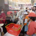 3年生は社会科「店で働く人」の学習の一環として、マックスバリュ大土肥店へ見学に行きました。バックヤードの中の休憩室で話を聞き、魚をさばくところを見たり、レジでバーコードをスキャンしたりするなど体験をしました。見学で学んだことを新聞でまとめる予定です。