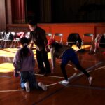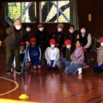 3日の桑遊び(縦割り活動)では、的当て大会を行いました。4つの班(赤1,赤2、青1、青2)に分かれて、競い合いました。1回目は赤2が勝ち、2回目は赤1が勝ちました。English Dayで来ていたALTも楽しんでいました。