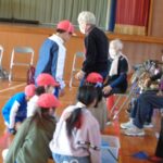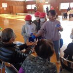 福祉の学習の一環として、4年生はお年寄りとの交流会を開きました。地域のお年寄りを学校にお招きしました。お年寄りの方は、4年生の作成した招待状を持ってきてくださいました。お年寄りと一緒にボッチャを行い、プレイ中にはお年寄りとハイタッチをするなど盛り上がりました。最後には一緒に桑村小の校歌を歌いました。心温まる会となりました。