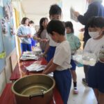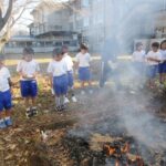 12月10日(水)に縦割りで育てたさつまいもを食べました。さつまいもを洗ってアルミ箔で包み、たき火の中に入れました。昼休みと帰りに縦割り班で食べました。蜜があって、あまいさつまいもでした。おいしかったので、たくさん食べた子もいました。