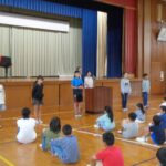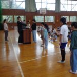 音楽委員会では、鬼ごっこをしながら曲がかかったら踊るというダンシング鬼ごっこをしました。「鬼のパンツ」、「校歌」、「負けないで」の三曲が流れ、それぞれダンスをしました。校歌のダンスが面白いです。いったいどんなダンスをしたのでしょうか?音楽が終わると、普通の鬼ごっこに変身です。体育館の中でたくさん汗をかきました。