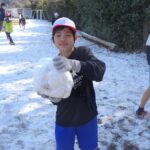 業間休みに、運動場に残った雪で元気いっぱいに遊びました。 あちこちで雪合戦が始まったり、力を合わせて大きな雪玉を作ったりと、思い思いに楽しむ姿が見られました。 冷え込みの厳しい一日でしたが、子どもたちの明るい歓声が運動場に響き渡っていました。
