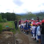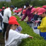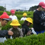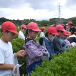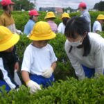 今朝、1校時の時間を使って、学校付近の茶畑でお茶摘み体験を行いました。 1年生にとっては初めてのお茶摘みでしたが、縦割りグループのペアである6年生が「こうやって摘むんだよ」と優しくお手本を見せ、丁寧にやり方を教えてくれました。最初は緊張していた1年生も、お兄さん・お姉さんのアドバイスのおかげで、すぐにコツをつかんで楽しそうに茶葉を摘んでいました。地域の伝統に触れる、素敵なひとときとなりました。