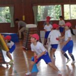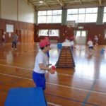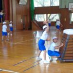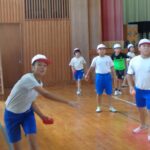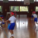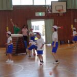 音楽委員会では、鬼ごっこをしながら曲がかかったら踊るというダンシング鬼ごっこをしました。「鬼のパンツ」、「校歌」、「負けないで」の三曲が流れ、それぞれダンスをしました。校歌のダンスが面白いです。いったいどんなダンスをしたのでしょうか?音楽が終わると、普通の鬼ごっこに変身です。体育館の中でたくさん汗をかきました。